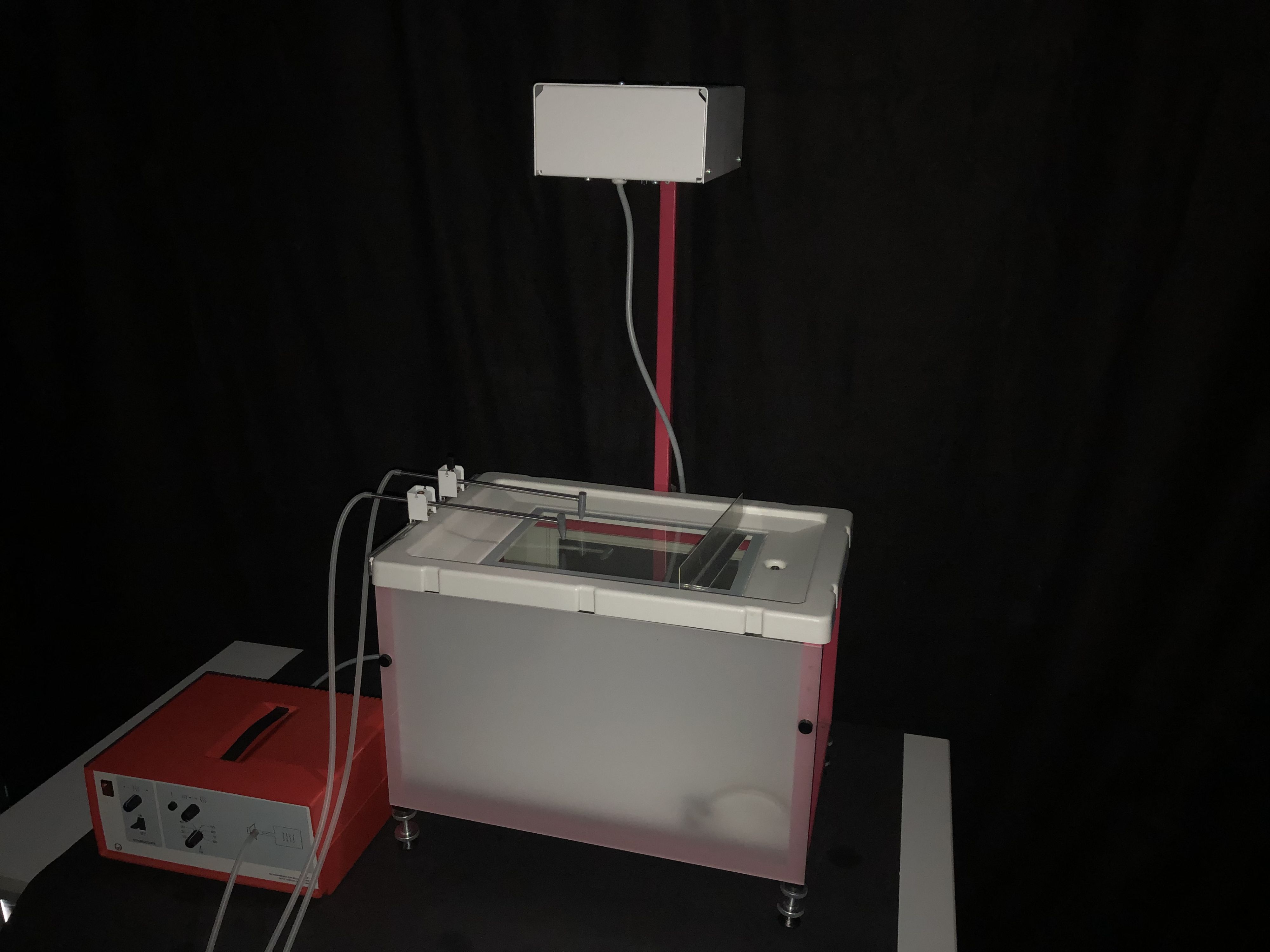 HW Schwingungen und Wellen Vollständiger Aufbau mit zwei Kreiswellendüsen und Reflexionswand.jpg