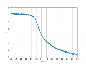 Um eine Messung durchzuführen, wird das Becherglas mit Wasser befüllt, welches zuvor im Kühlschrank gekühlt wurde. Anschließend wird mit dem Betrieb der Heizfolie begonnen und das Arduino-Programm gestartet. Nach Erreichen der gewünschten Endtemperatur wird die Masse des Magneten ermittelt, indem das Becherglas mit der Gadolinium-Probe unter dem Magneten entfernt wird und weiterhin Messwerte für die Kraft aufgenommen werden. Die Ausgabe im seriellen Monitor kann in eine Textdatei kopiert und anschließend mit Python ausgewertet werden.