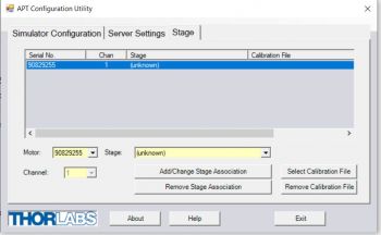 Die Rotation Stage wird per Kabel mit dem Motor Controller verbunden und dieser über USB mit einem PC/ Laptop. Über die APT Software kann der Motor gesteuert werden. Dafür muss zunächst in APT Config der richtige Controller und die Stage ausgewählt werden und anschließend kann in APT User darauf zugegriffen werden. In APT User können Positionen eingegeben werden, zu denen sich das Mondmodell drehen soll (hierbei handelt es sich um eine programmeigene Einheit und keine Gradzahlen!) und außerdem die Drehgeschwindigkeit variiert werden.