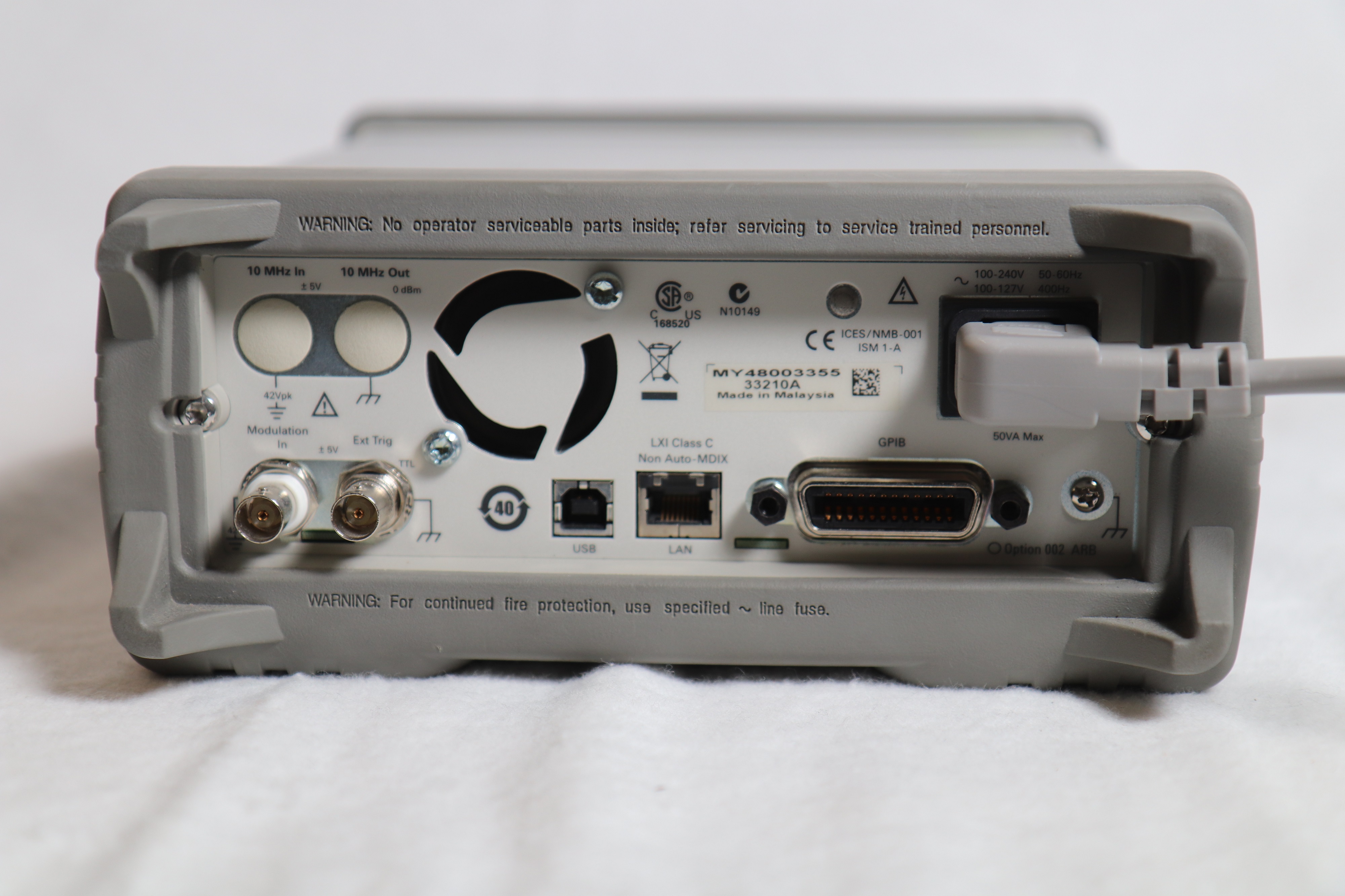 Datei:HW Elektronik Frequenzgenerator Agilent 33210A Rückseite.JPG