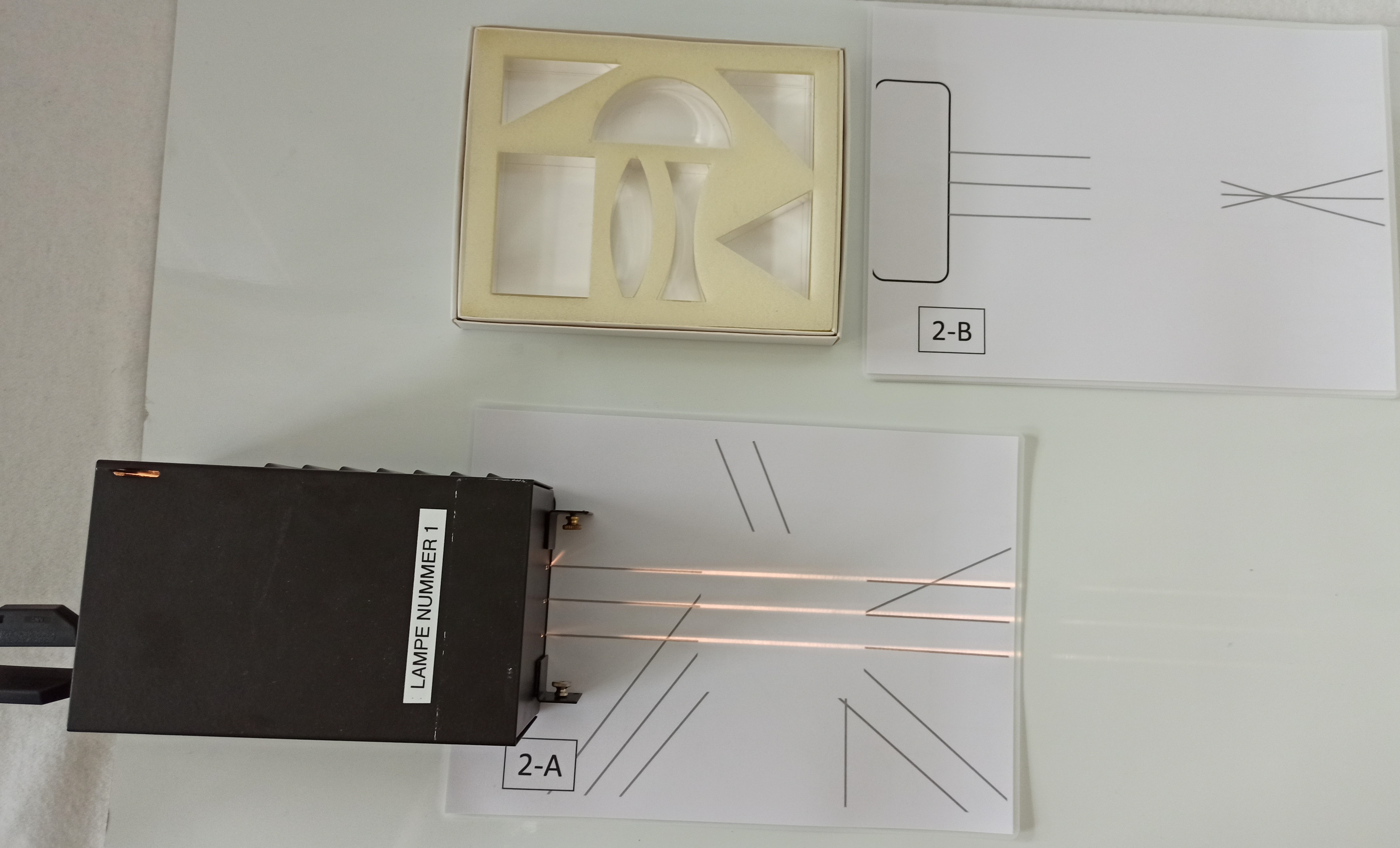 Datei:PL Optik Versuchsaufbau Strahlengänge des Lichts nachlegen.jpg