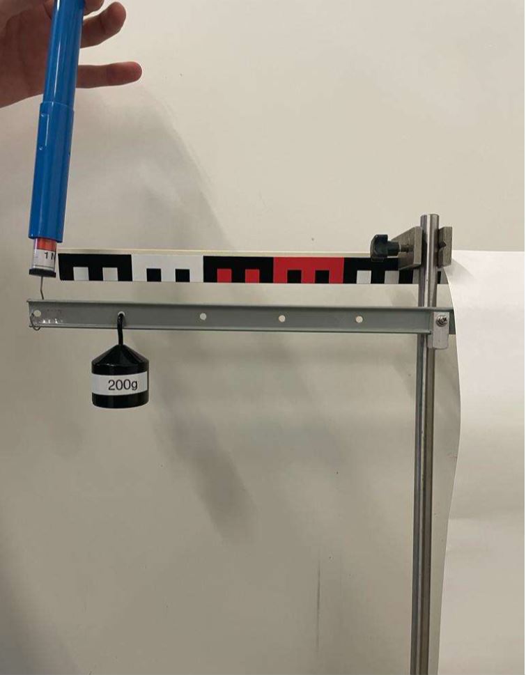 - Auch die Massen der verwendeten Massestücke ist von weit weg nur schwer zu erkennen. Es bietet sich daher als an entweder die Massestücke zu beschriften, immer identische Massestücke zu verwenden oder auf Federkraftmesser mit deutlicher Skala umzusteigen.