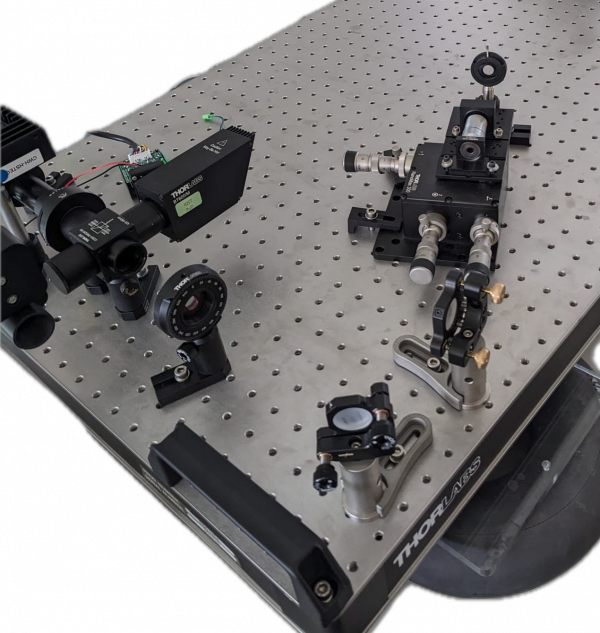 Zuerst werden die Linse und das Pinhole auf der xyz-Stage fixiert.