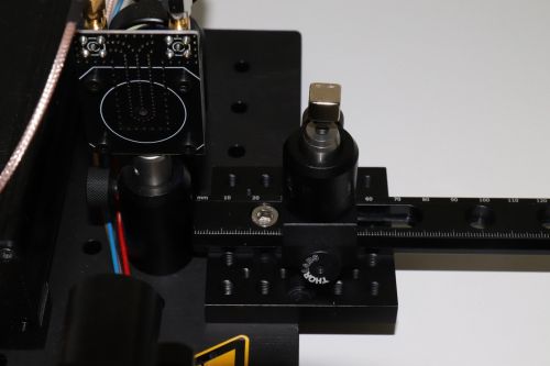 - 2 mal Linsen (Fokussierung des einfallenden Lichts auf den Diamanten + Abbildung des Diamanten auf die Photodiode)
