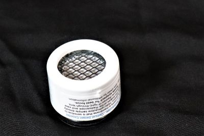 Hinter dem Schutzgitter ist die Zinksulfidschicht erkennbar. Diese kann durch Alphastrahlung zur Szintillation angeregt werden.