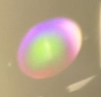 - Dann wird die Handytaschenlampe zwischen Laser und Linse gehalten. Falls noch keine Weißlichtinterferenz sichtbar ist, muss mit der verschiebbaren Stage weiter die richtige Position gesucht werden.